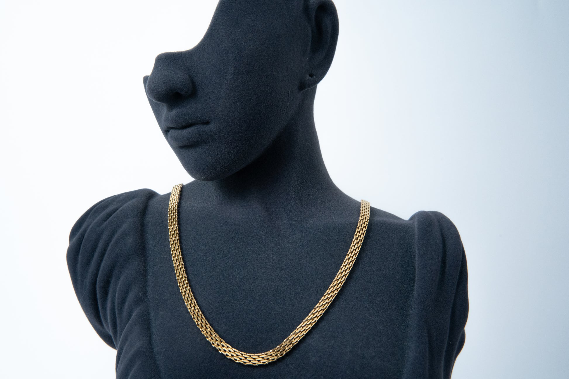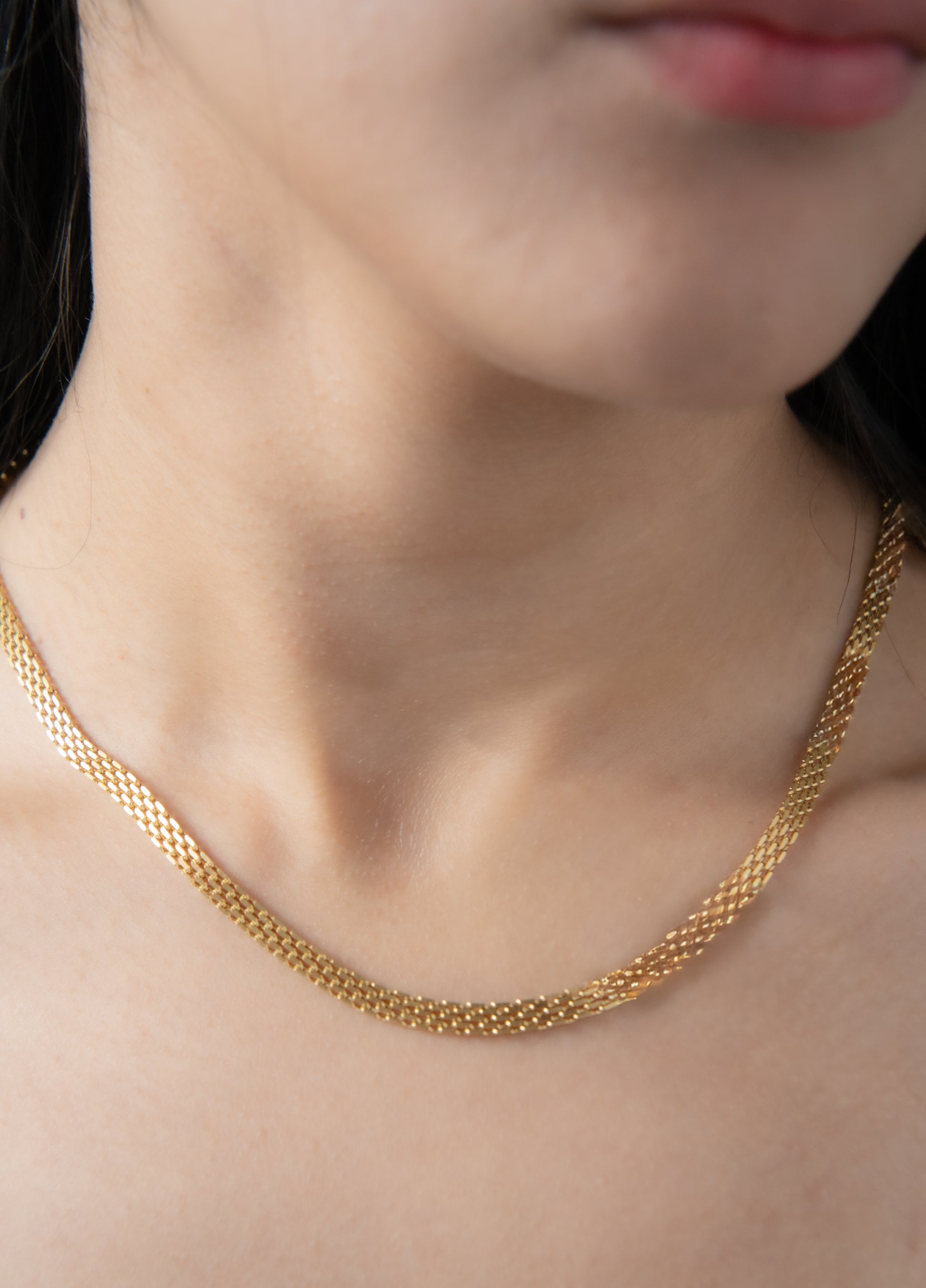 Elegancia y sofisticación en una sola pieza. Esta hermosa cadena de oro con diseño "chinesca" es perfecta para añadir un toque de glamour a cualquier look. Con su estilo clásico y delicado, esta cadena es ideal para lucir sola o combinarla con tus accesorios favoritos. Hecha para destacar con estilo y elegancia, esta cadena de oro es una excelente opción para cualquier ocasión.