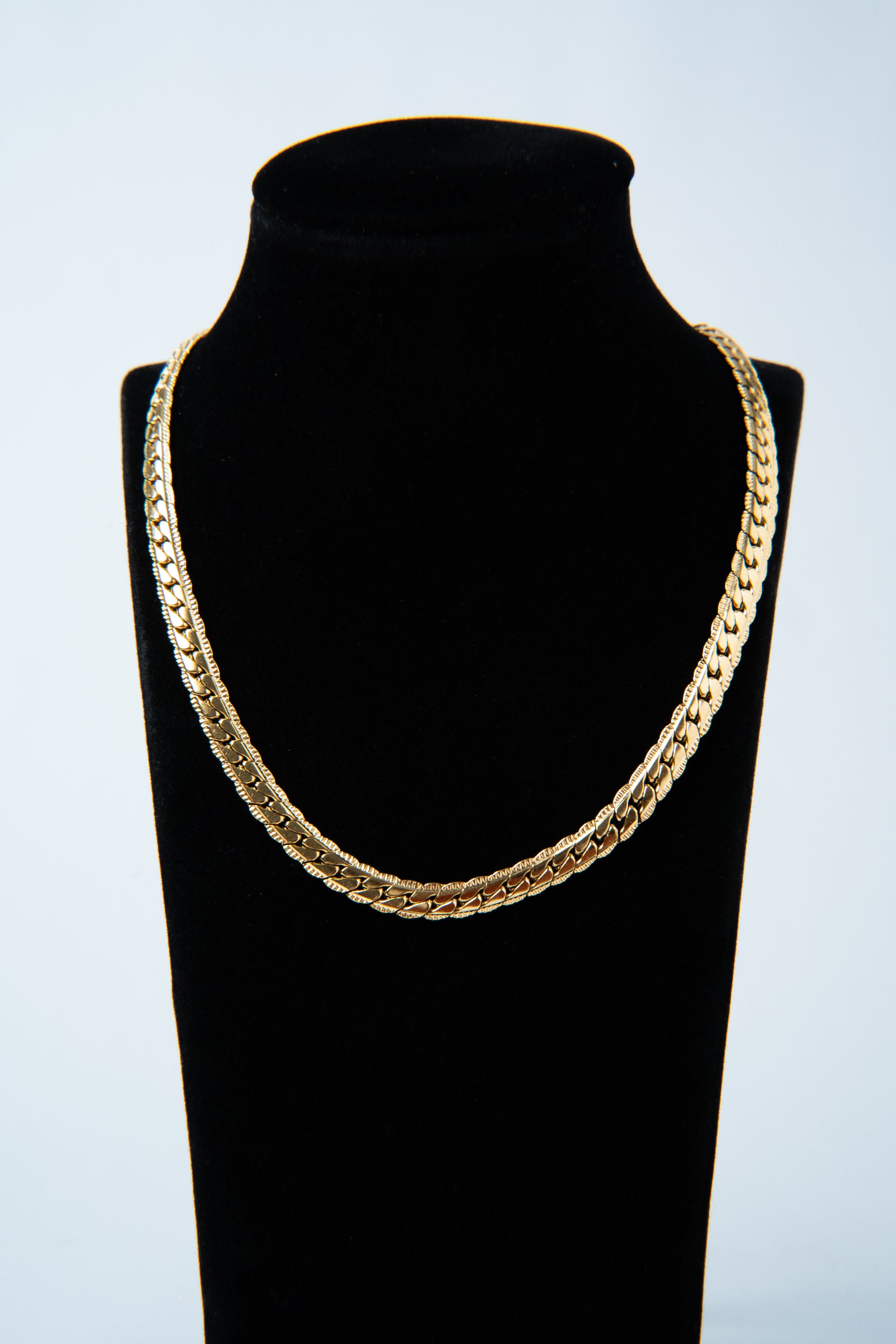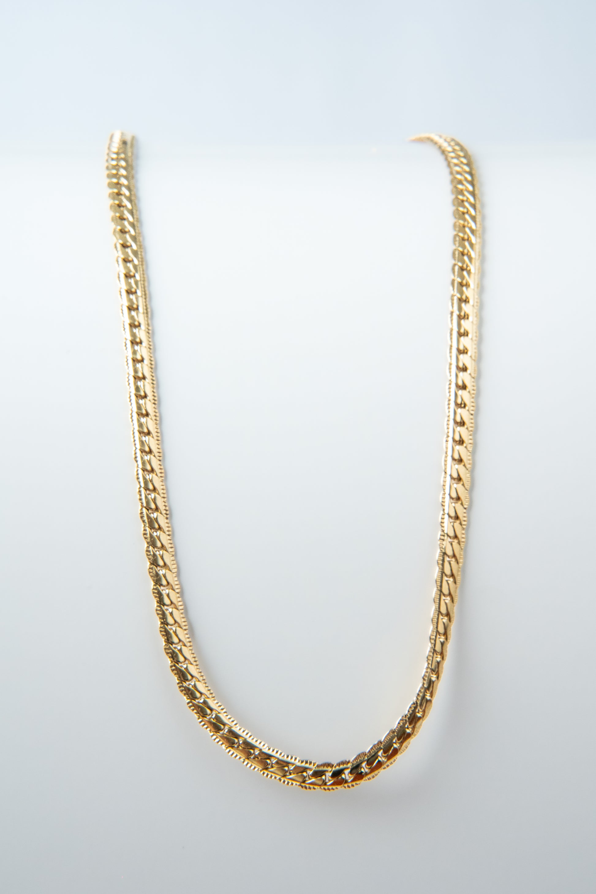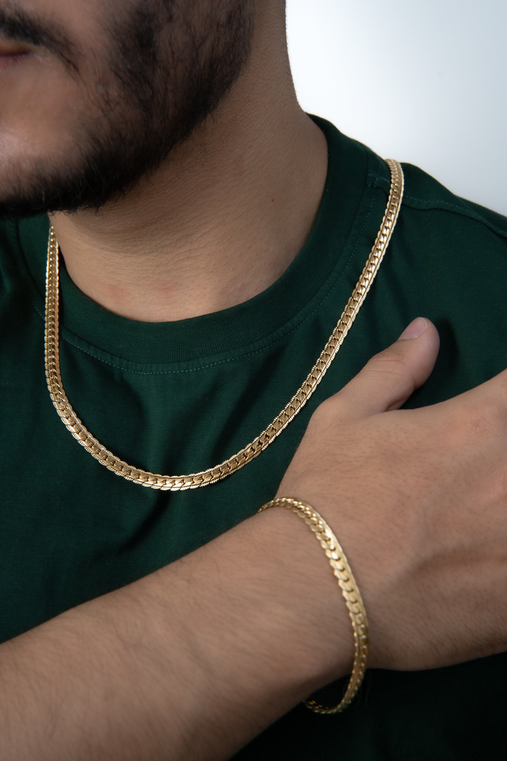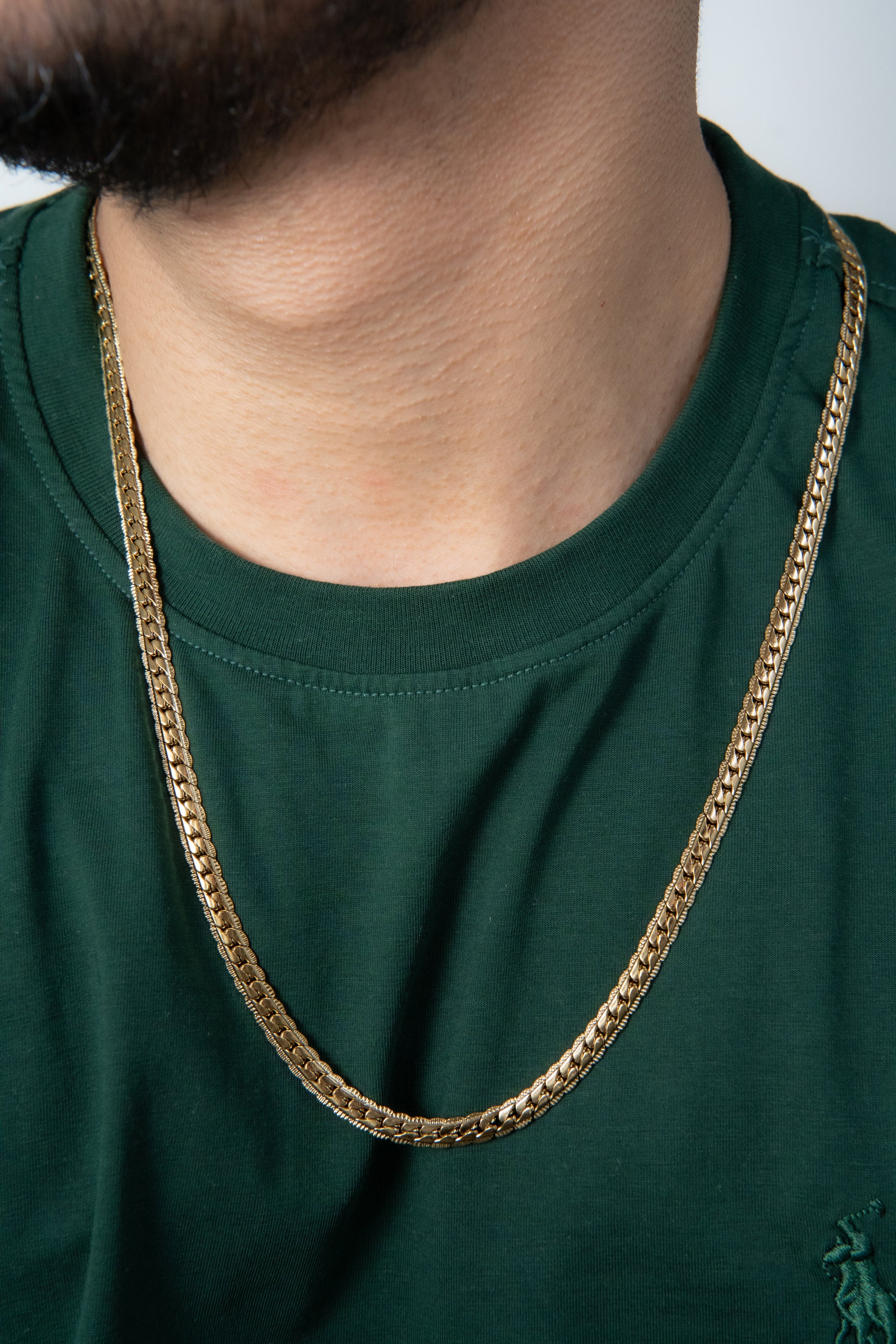 Elegancia y estilo en oro. Con eslabones grabados y acabado en oro, aporta un toque de elegancia a cualquier look. Ideal para lucir solo o con un dije. Perfecta para ocasiones especiales o el día a día. Hecha para caballeros que valoran la calidad y el diseño.
