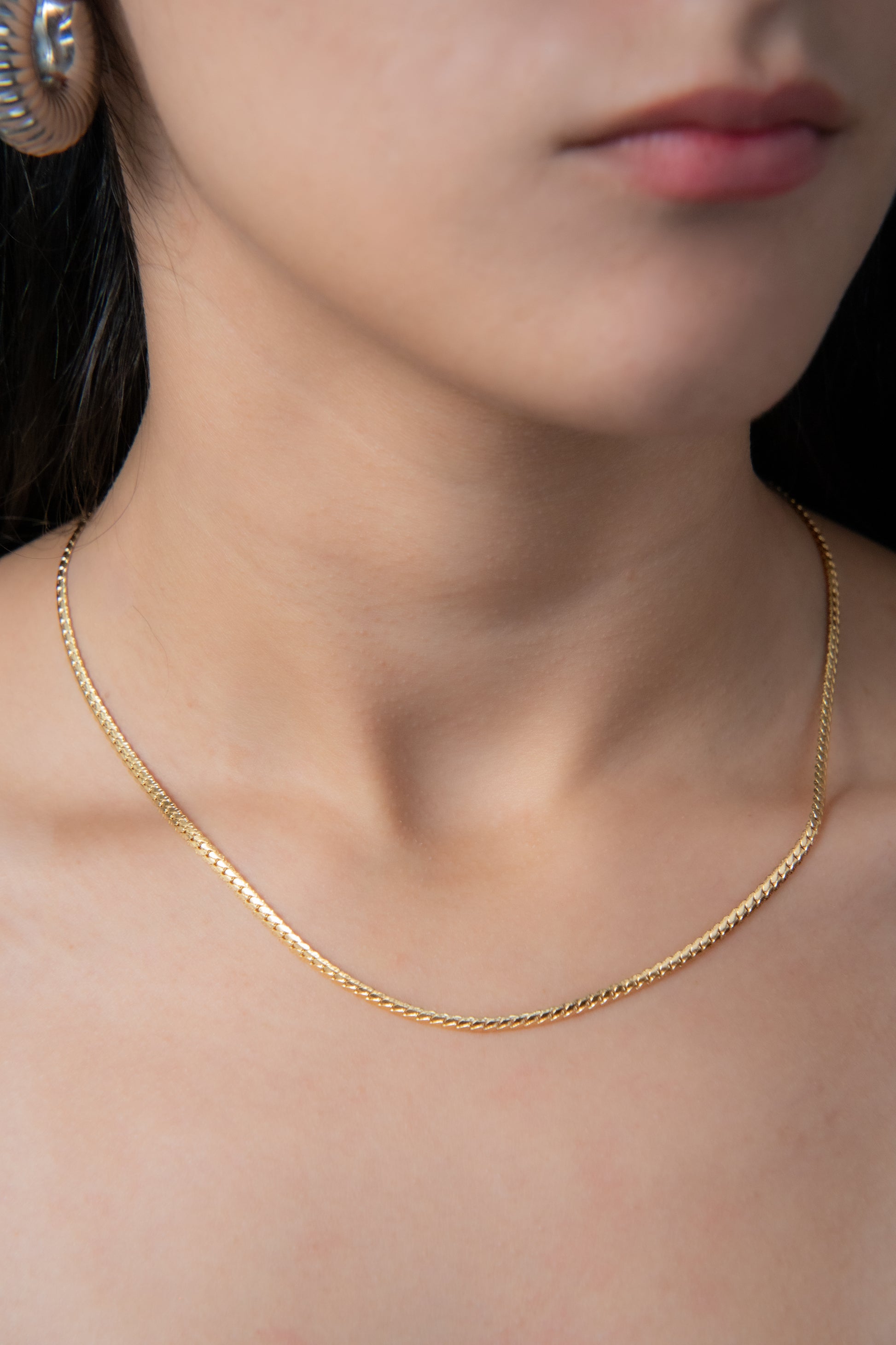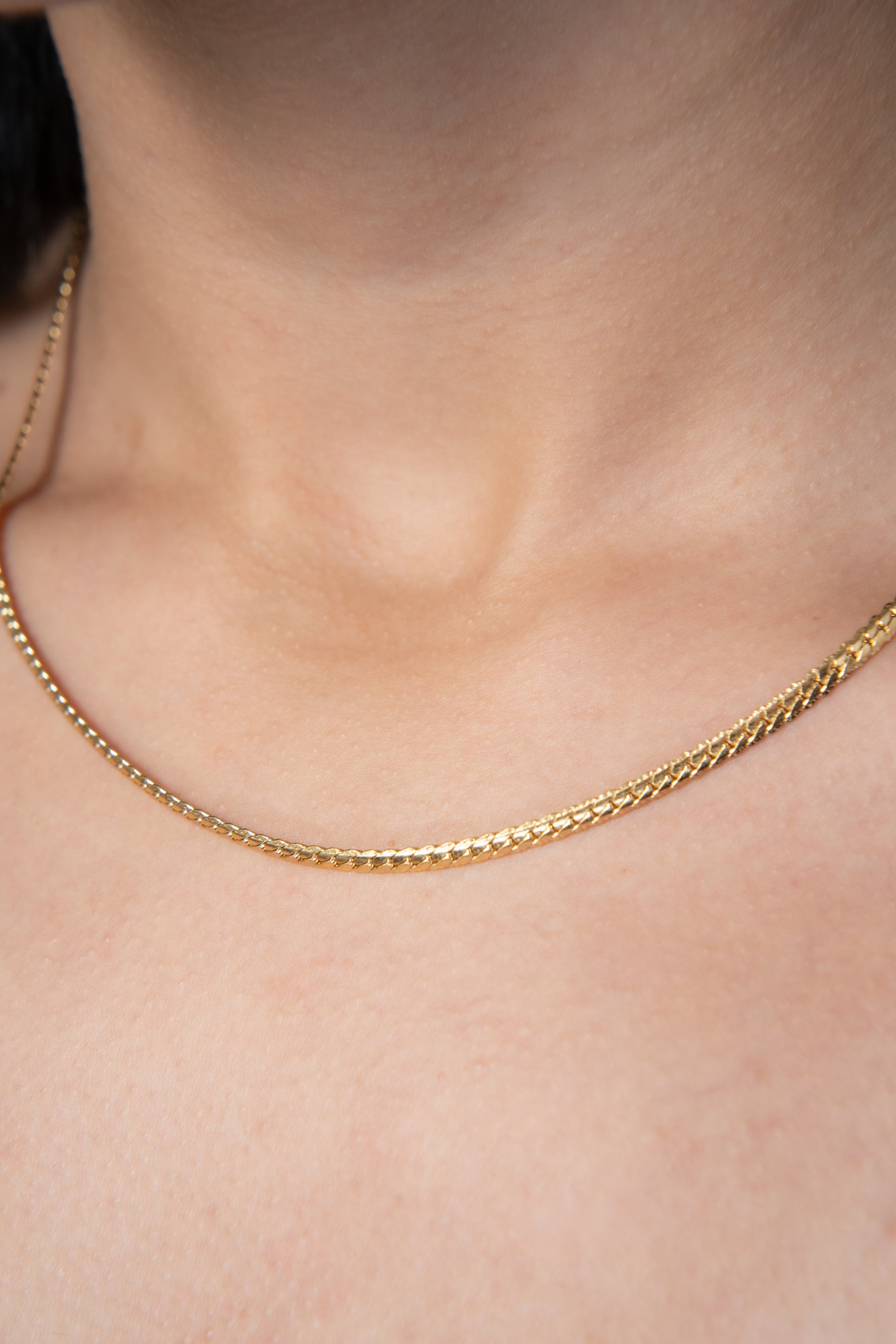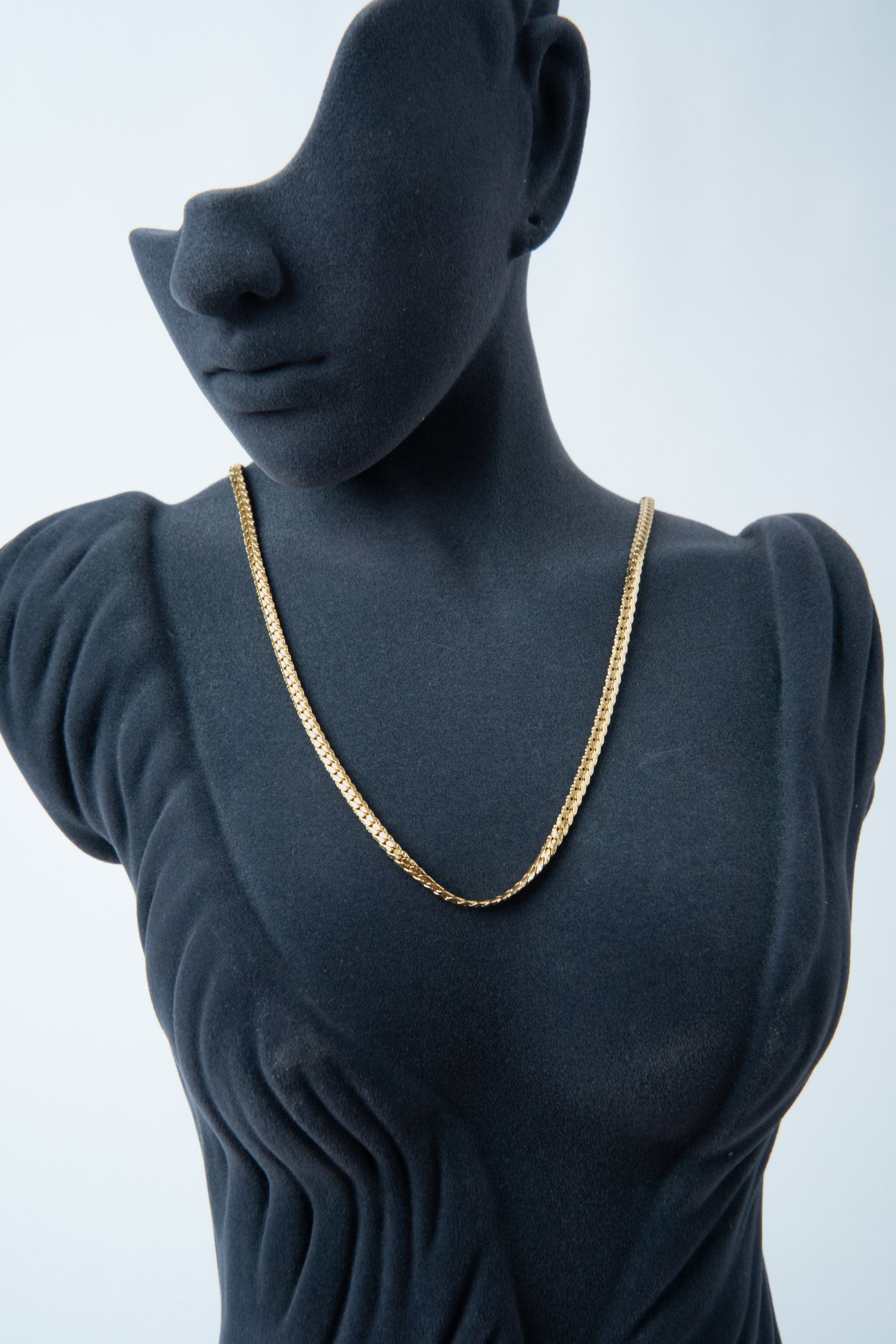 Una elegante cadena de oro con diseño de eslabones grabados que aporta sofisticación y estilo a cualquier look femenino. Con un acabado en oro que brilla sutilmente, esta cadena es perfecta para lucir sola o acompañada de un dije delicado. Ideal para ocasiones especiales o para darle un toque de distinción a tu outfit diario. Hecha para mujeres que valoran la calidad y el diseño en sus accesorios. 💎