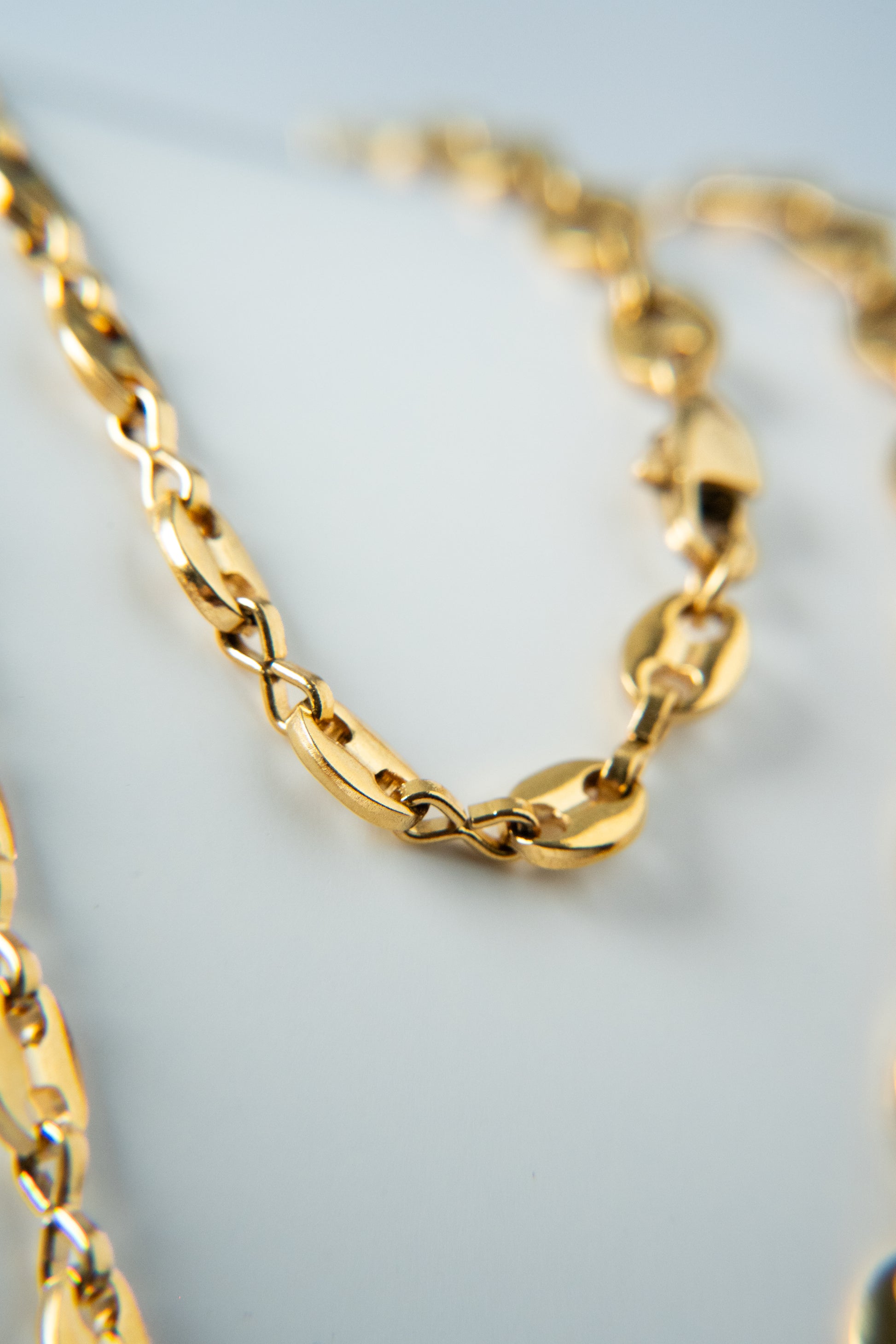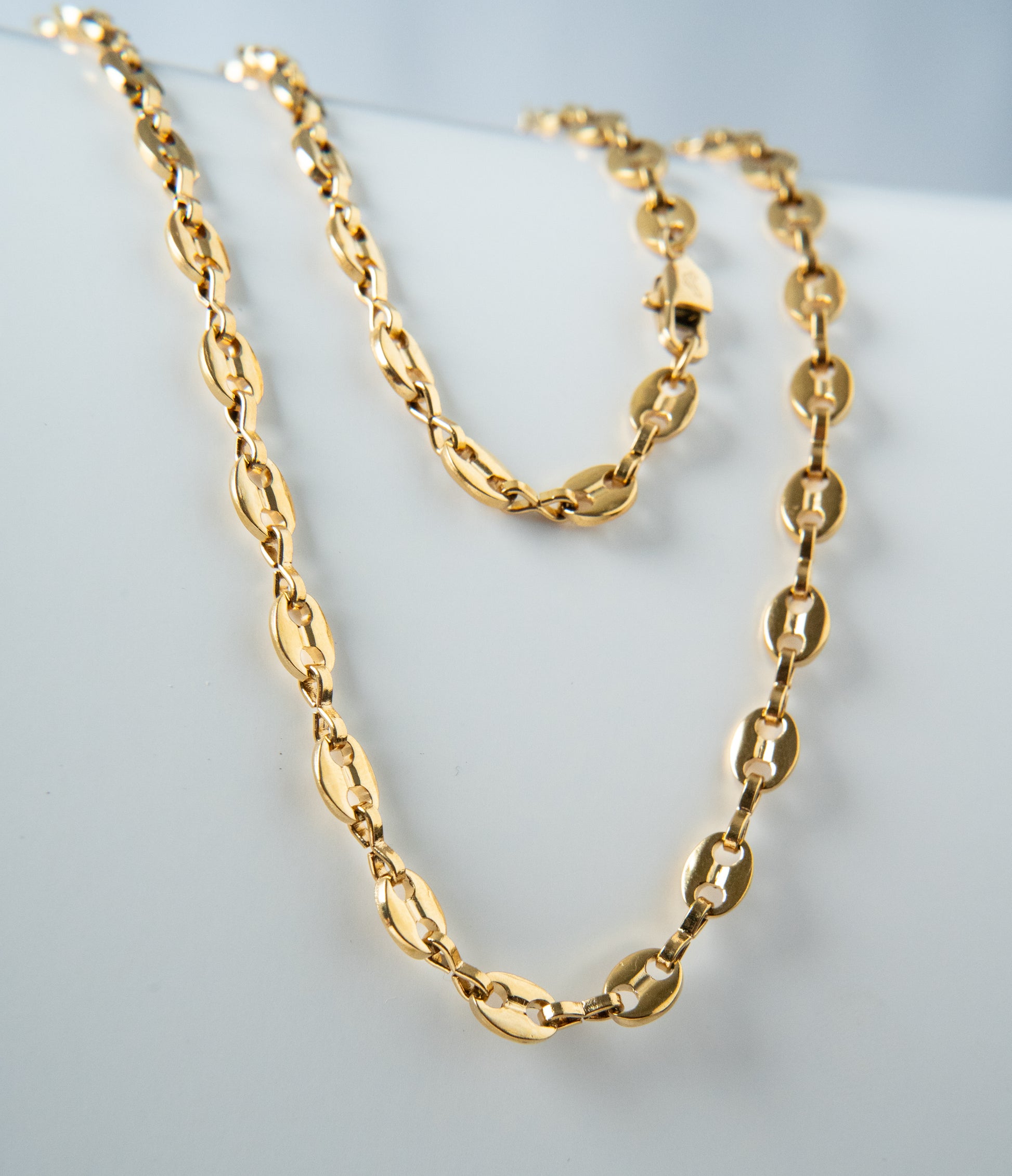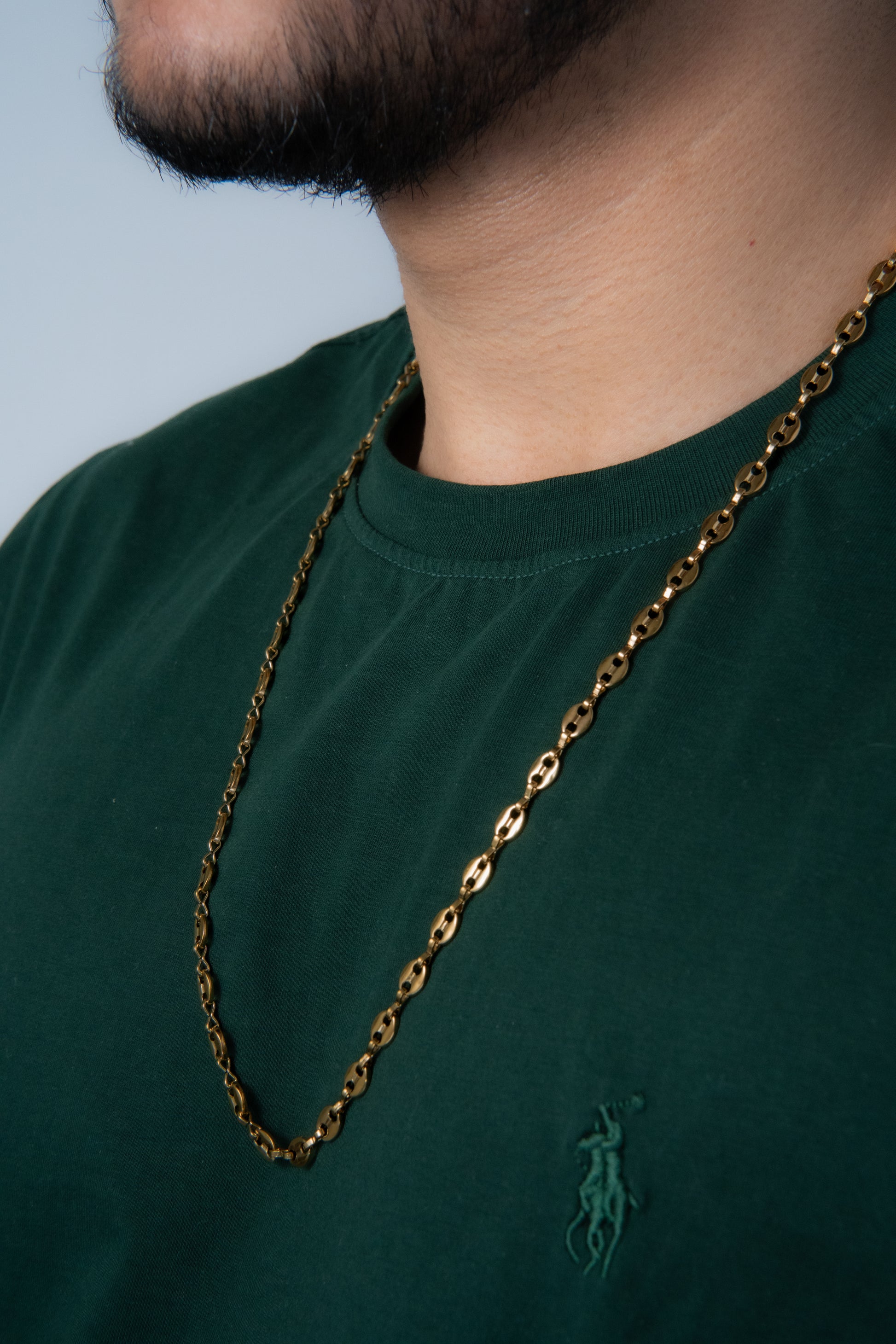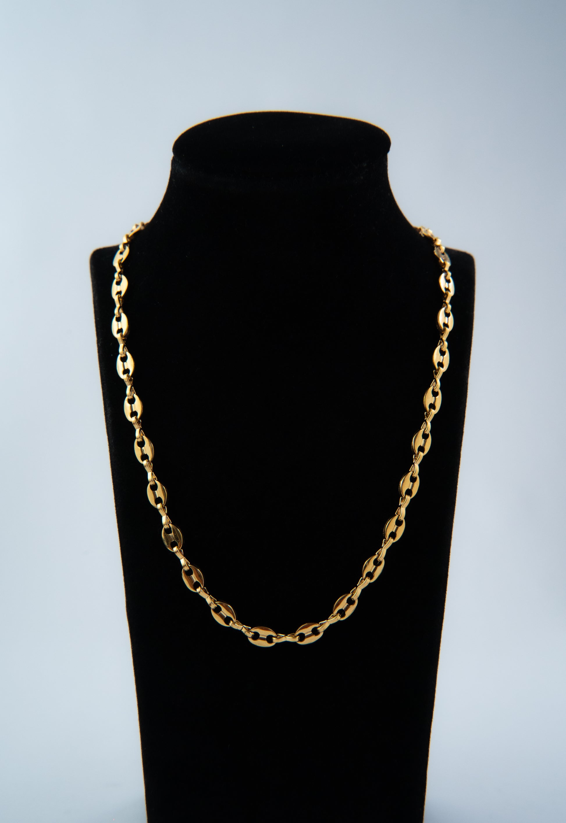 Elegancia y estilo en cada eslabón. La cadena Gucci para caballero es una pieza sofisticada que combina diseño y calidad. Con eslabones dorados brillantes y un acabado impecable, esta cadena es perfecta para complementar cualquier look masculino. Ideal para ocasiones especiales o para un toque de lujo en el día a día.