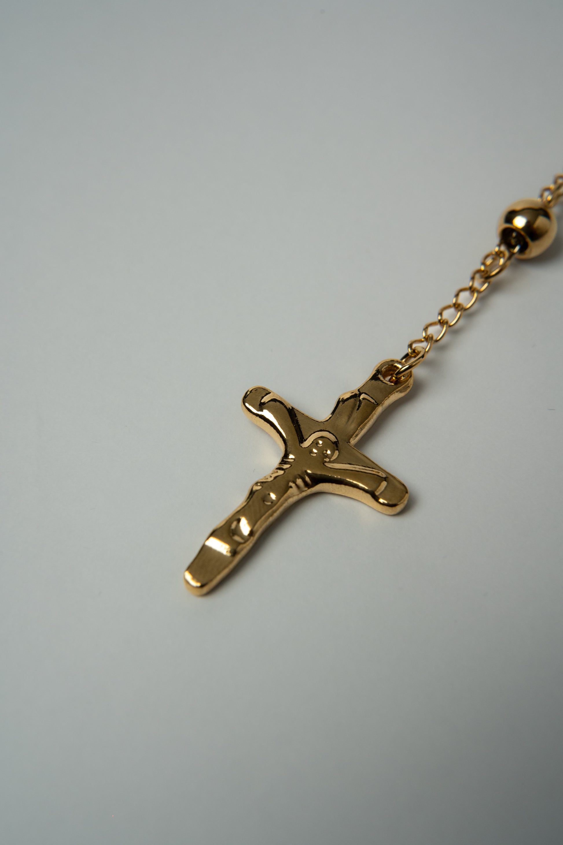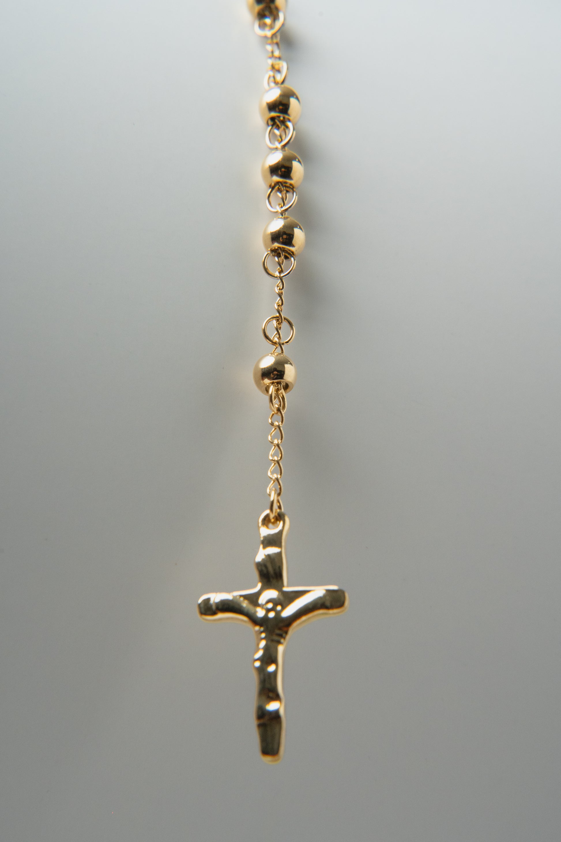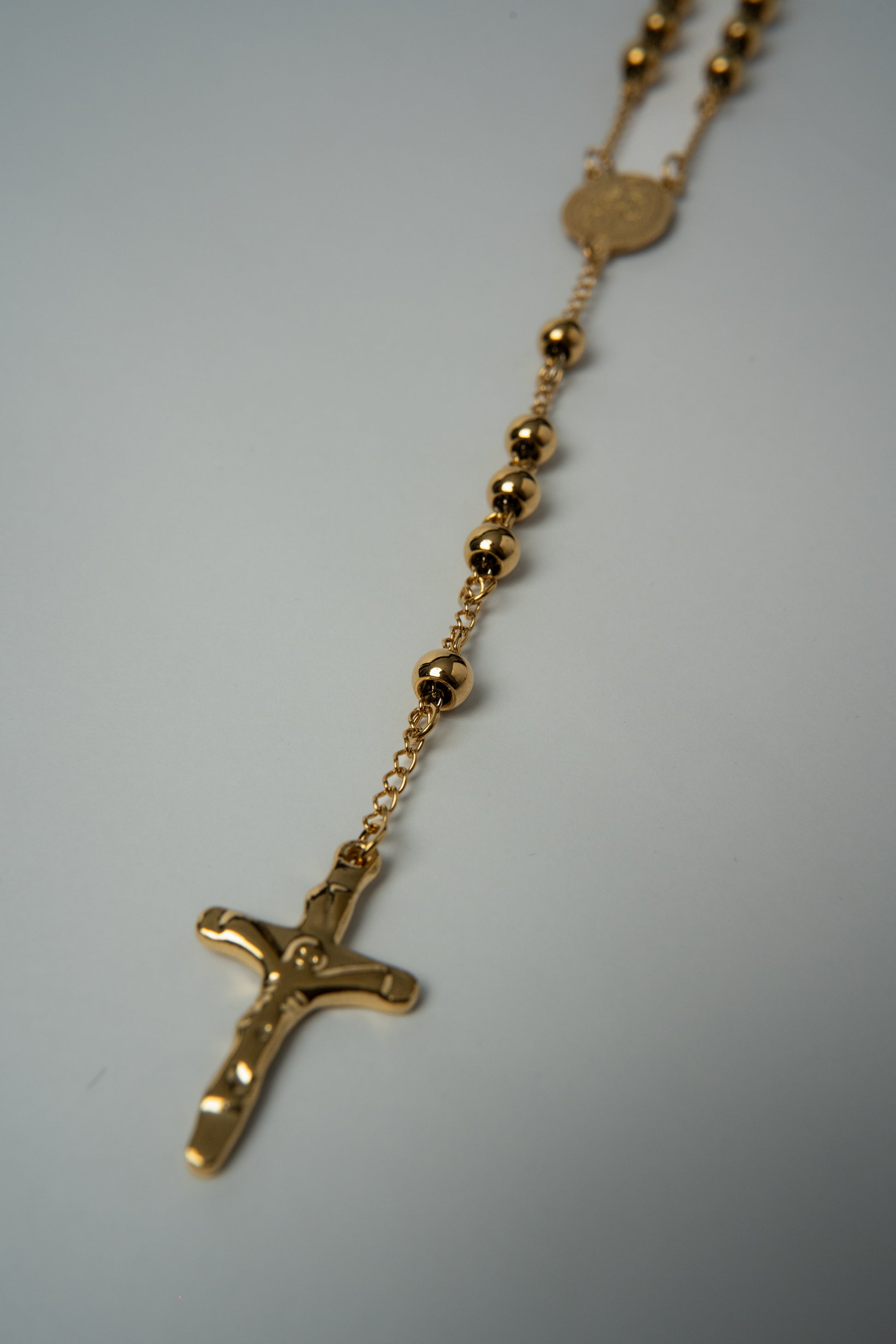 Elegancia y Fe en Oro; Descubre esta hermosa camándula de oro para caballero, diseñada para combinar elegancia y significado espiritual. Con un delicado diseño de cadena de bolitas doradas y un medallón ovalado que conecta a un crucifijo dorado, esta camándula es perfecta para aquellos que buscan un accesorio sofisticado y con un toque de fe.