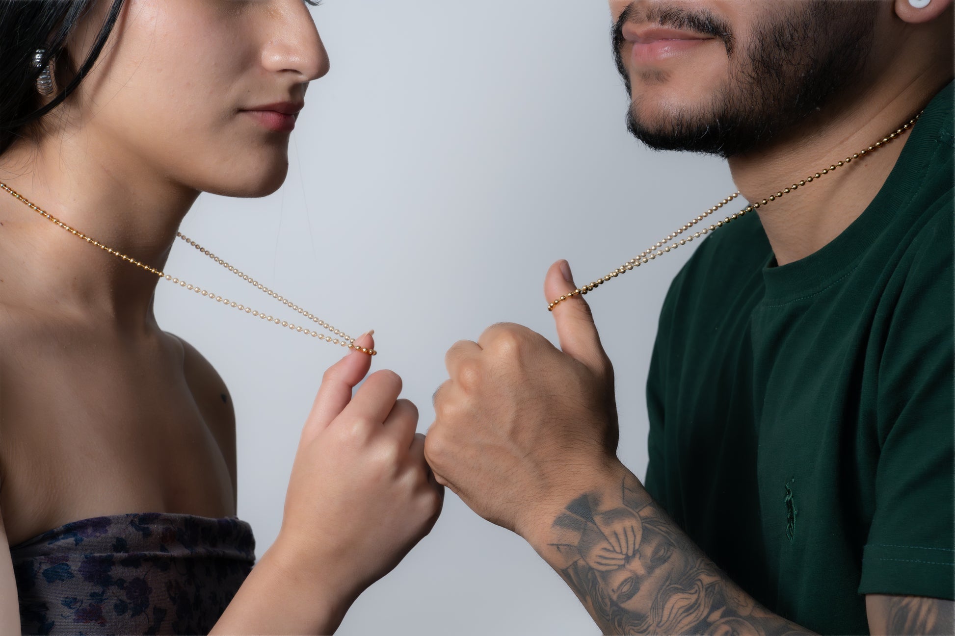 Descubre el dúo de cadenas "Militar", un símbolo de unión y conexión para parejas. Este elegante conjunto de cadenas de oro conecta a dos personas con un diseño minimalista y sofisticado. Perfecto para expresar amor y compromiso de manera sutil pero significativa. Ideales para regalar o compartir un detalle especial con tu pareja.