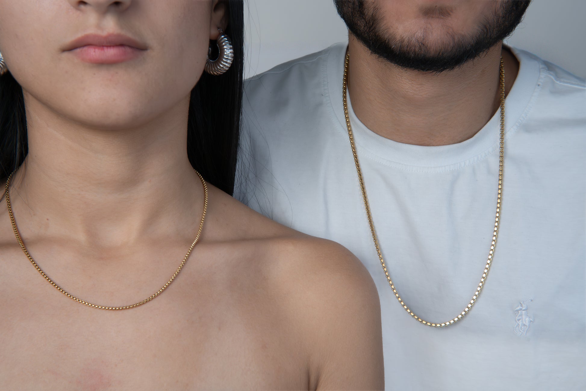 Descubre el dúo perfecto para compartir con tu pareja. Estas elegantes cadenas de oro estilo Veneciana son ideales para lucir juntos en cualquier ocasión. Con un diseño minimalista y sofisticado, estas cadenas aportan un toque de clase y armonía a cualquier look.